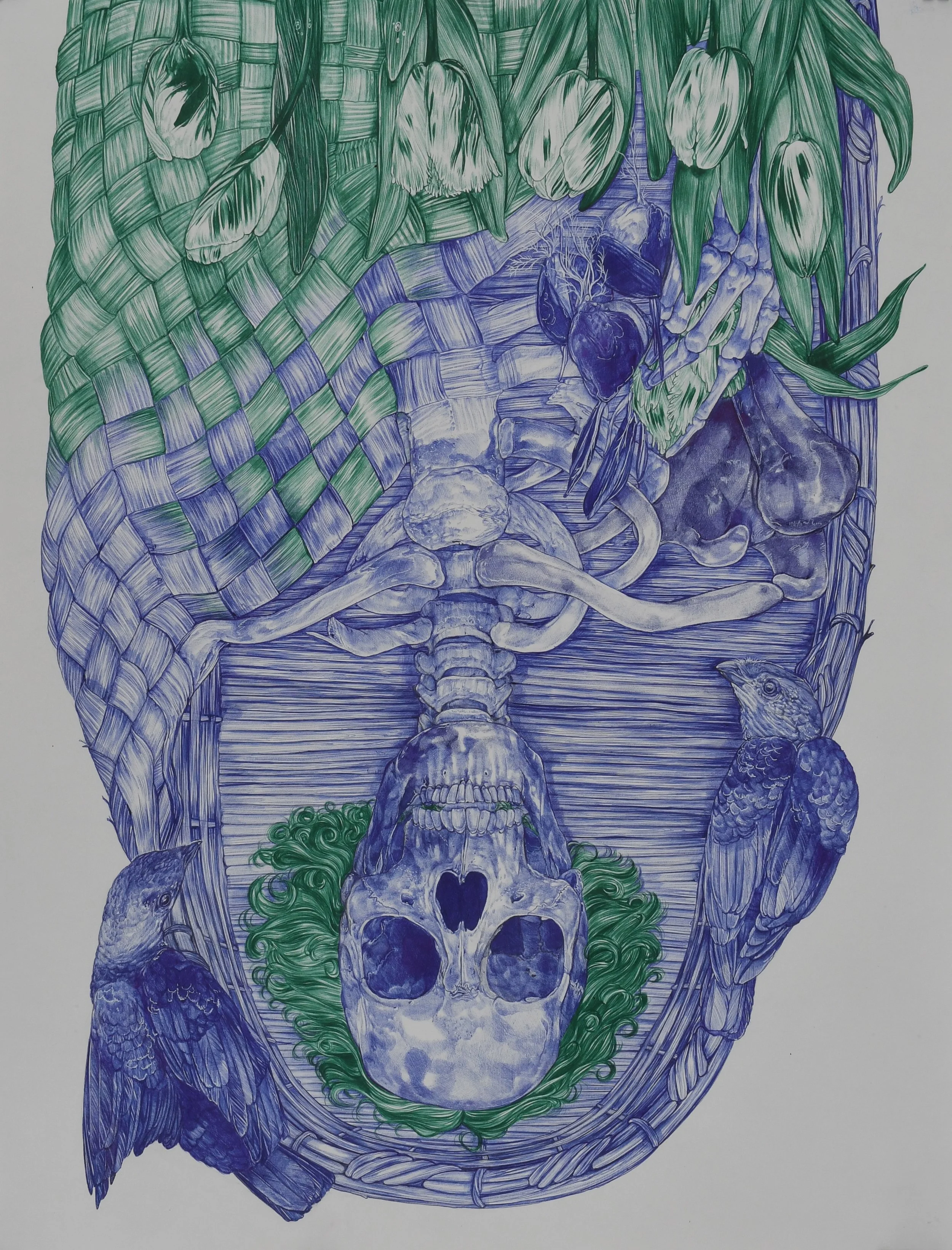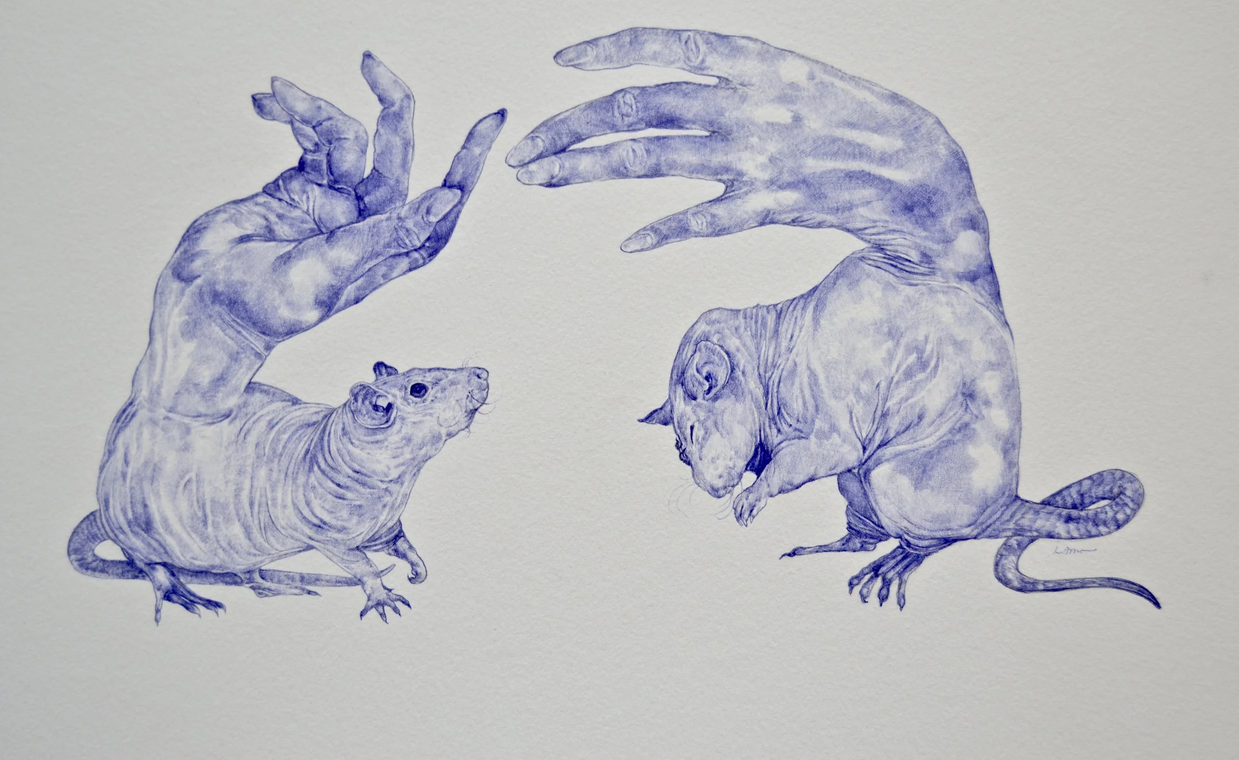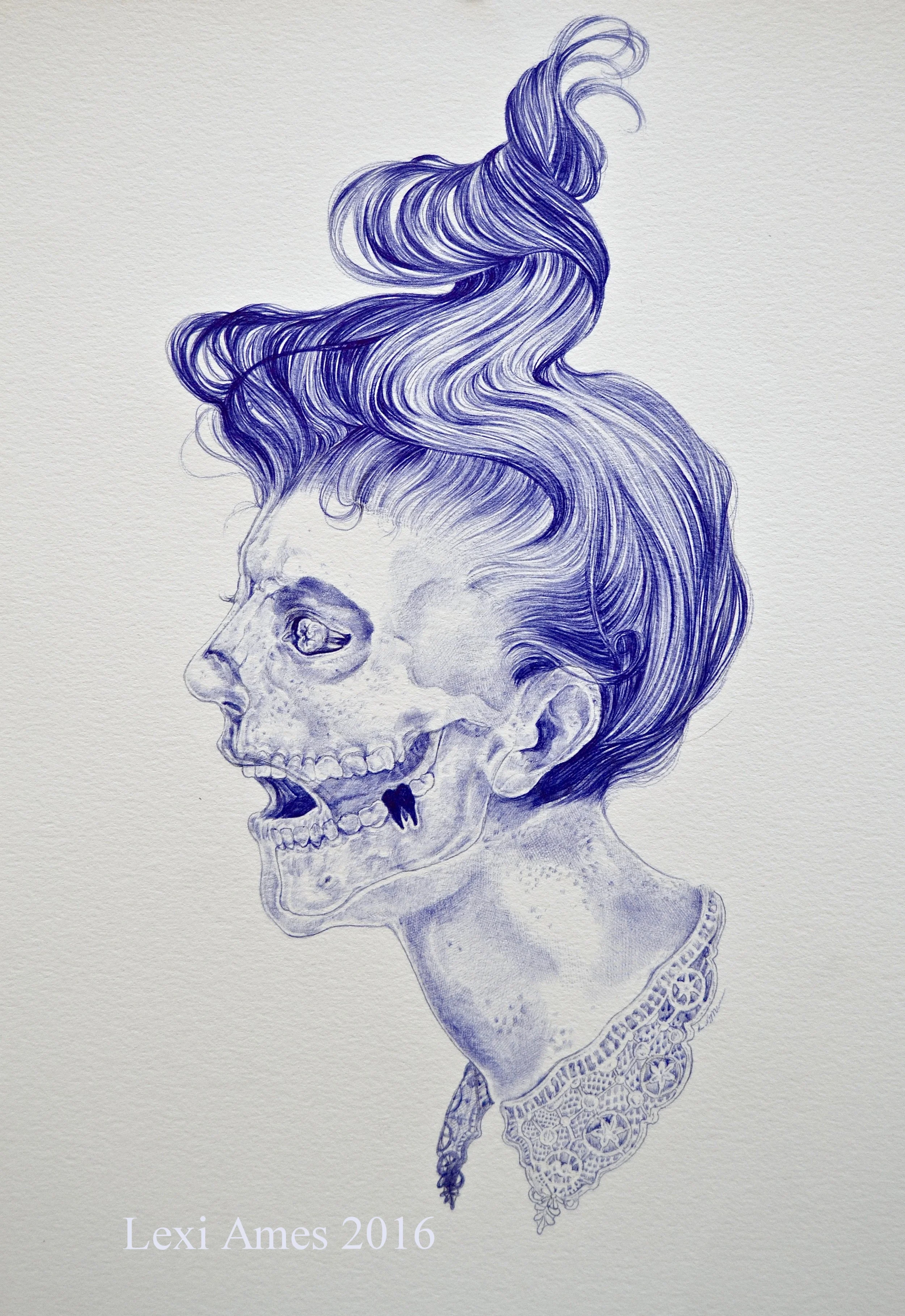 The following works were created using a Papermate Ballpoint 1.0 M pen. Particularly delicate work rendered in ballpoint tends to take on a quality similar to an etching, a distinction I greatly enjoy producing, though it is time consuming. Large pieces take up to 130 hours to complete, and may use 18 pens.