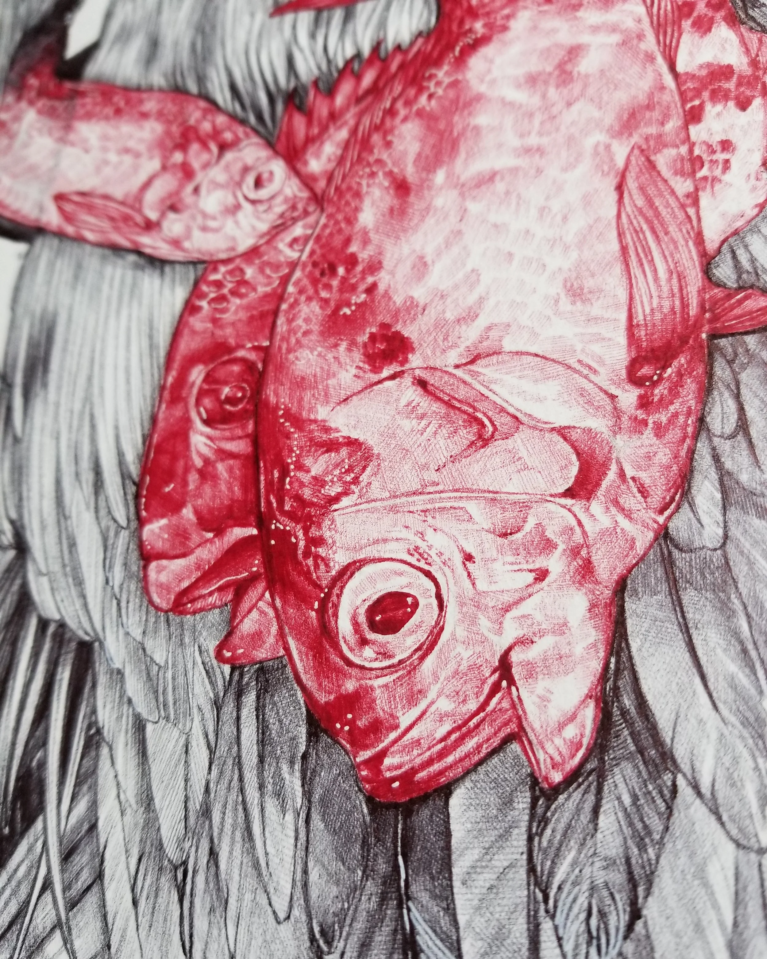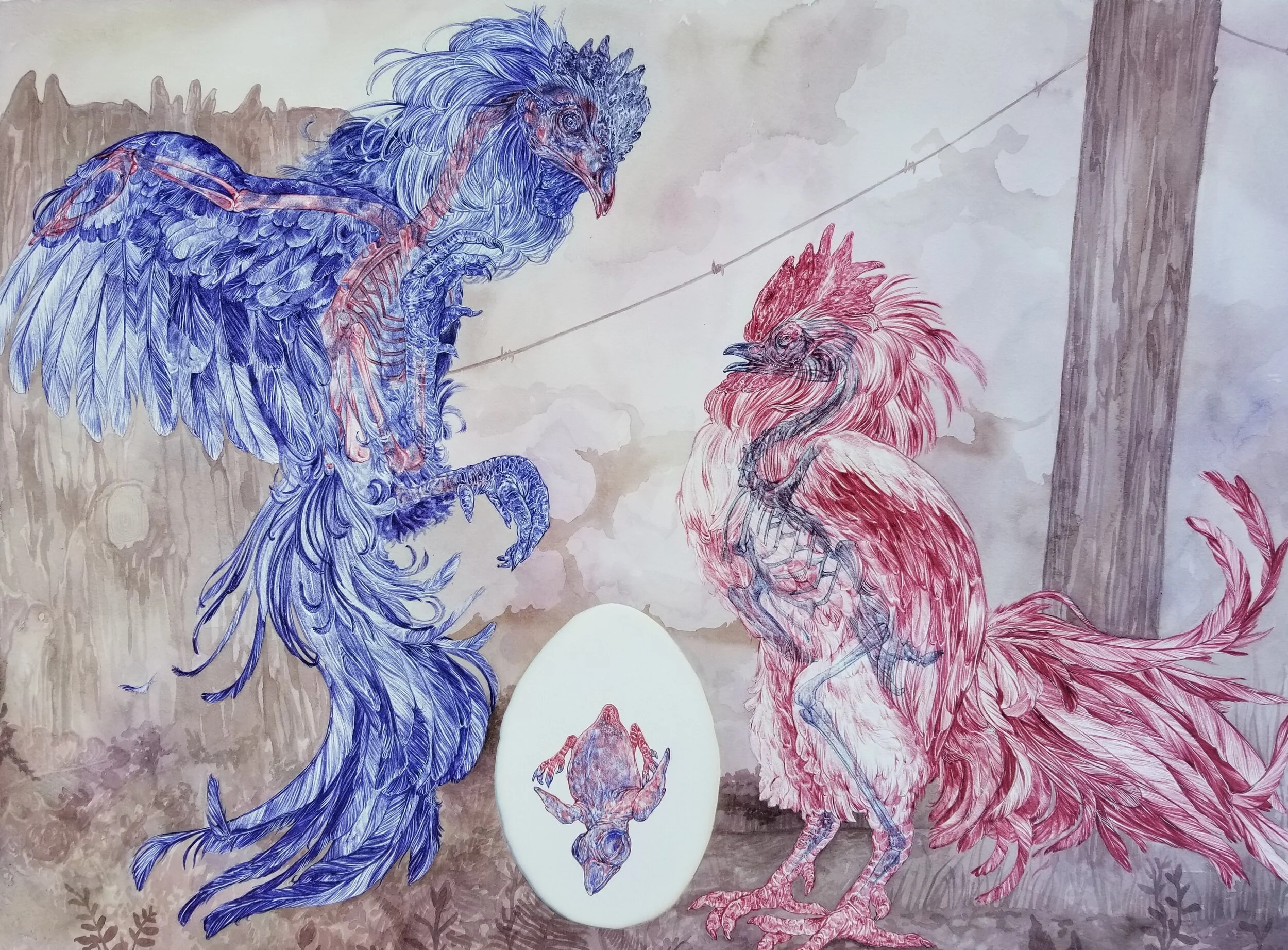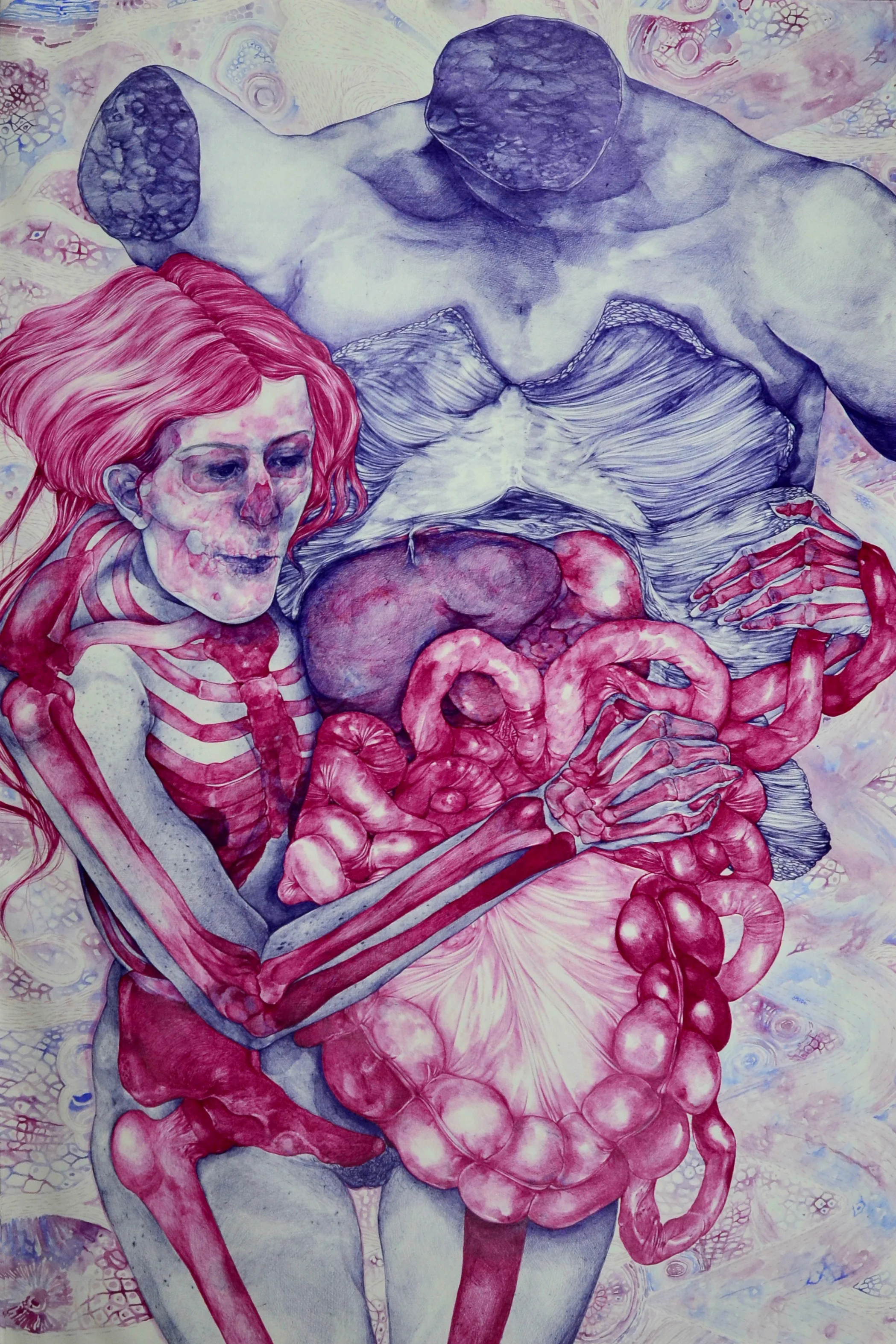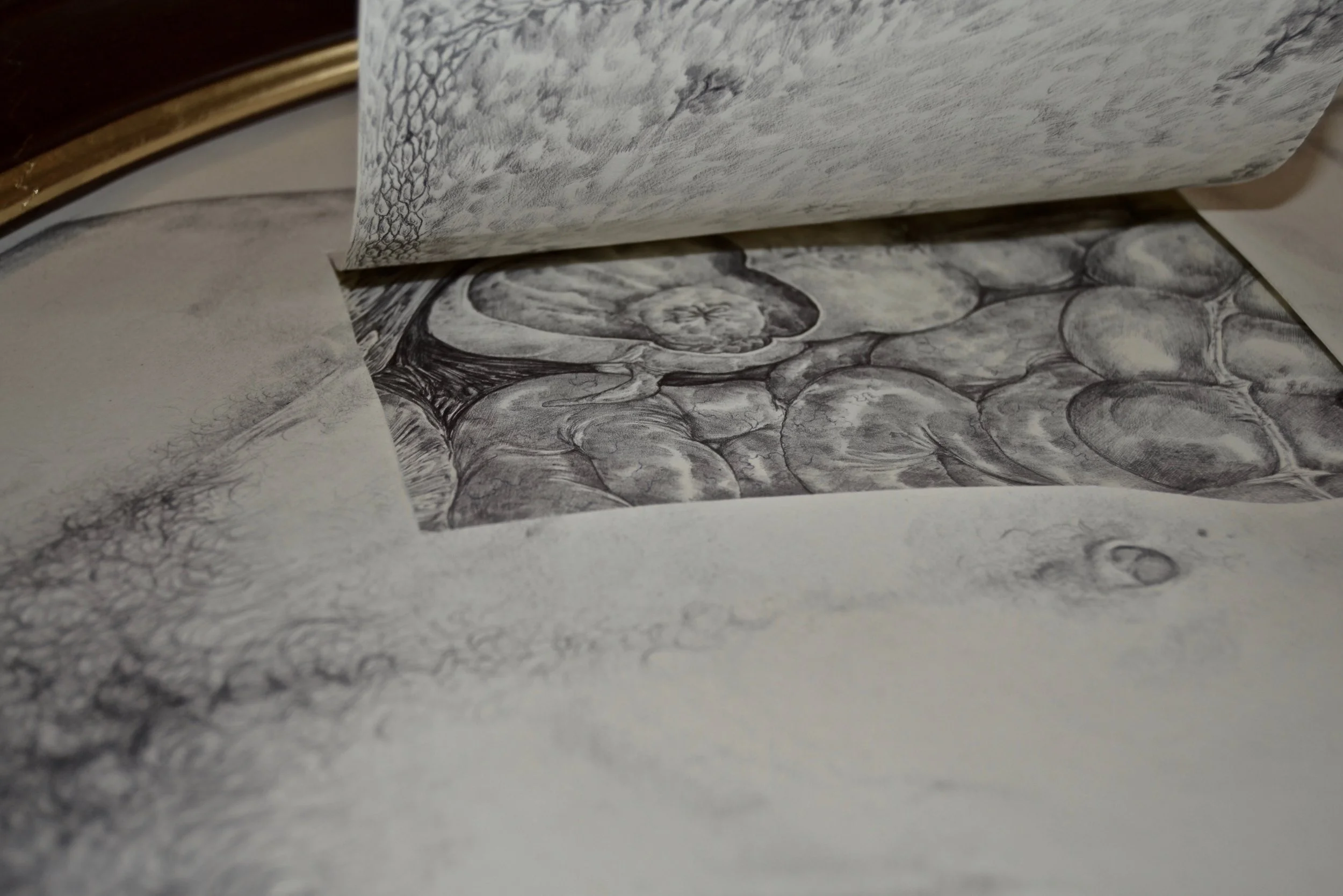 The following works were created using a Papermate Ballpoint 1.0 M pen. Particularly delicate work rendered in ballpoint tends to take on a quality similar to an etching, a distinction I greatly enjoy producing, though it is time consuming. Large pieces take up to 130 hours to complete, and may use 18 pens.
