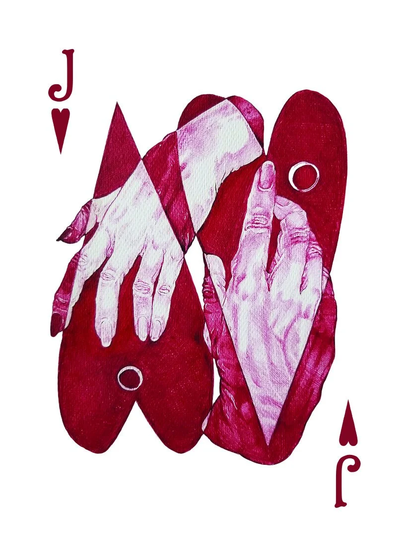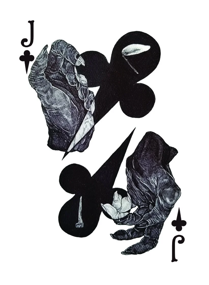 Fully custom 54-card deck designed for client in a medieval/fantasy theme. Originally drawn in my ballpoint pen style. Multi/mixed-media, 2020.